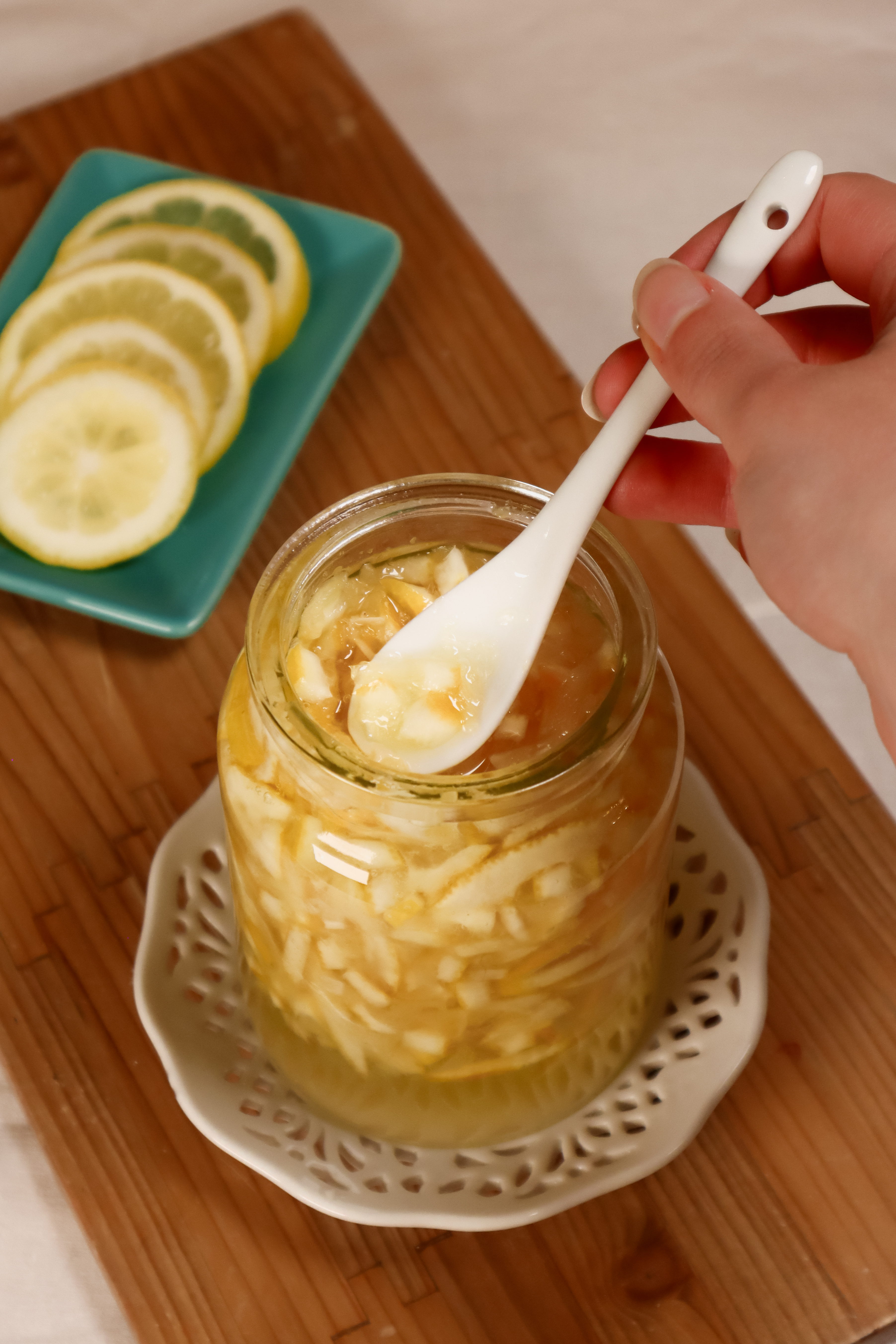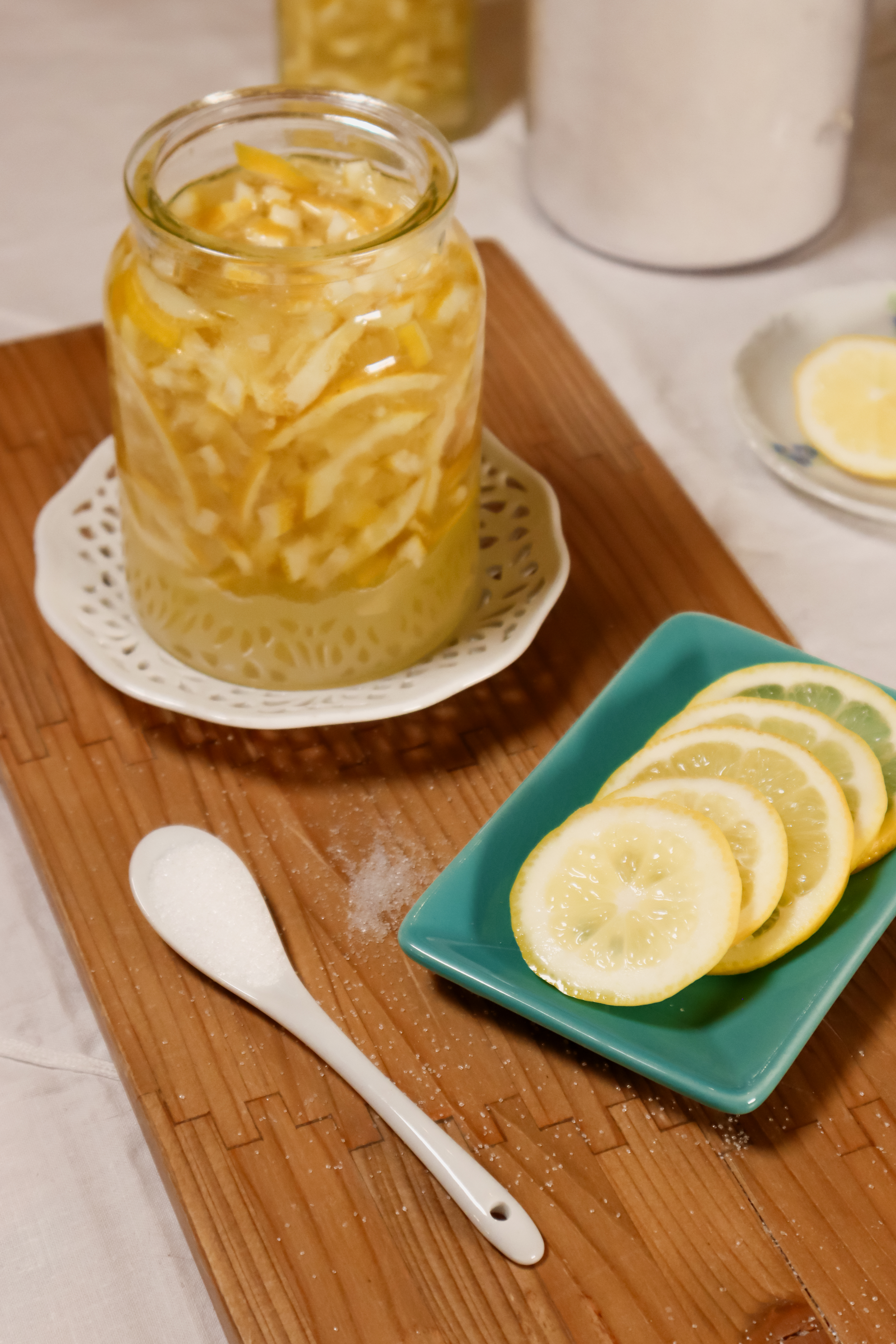 - Layer lemon → sugar → lemon → sugar in alternating layers.