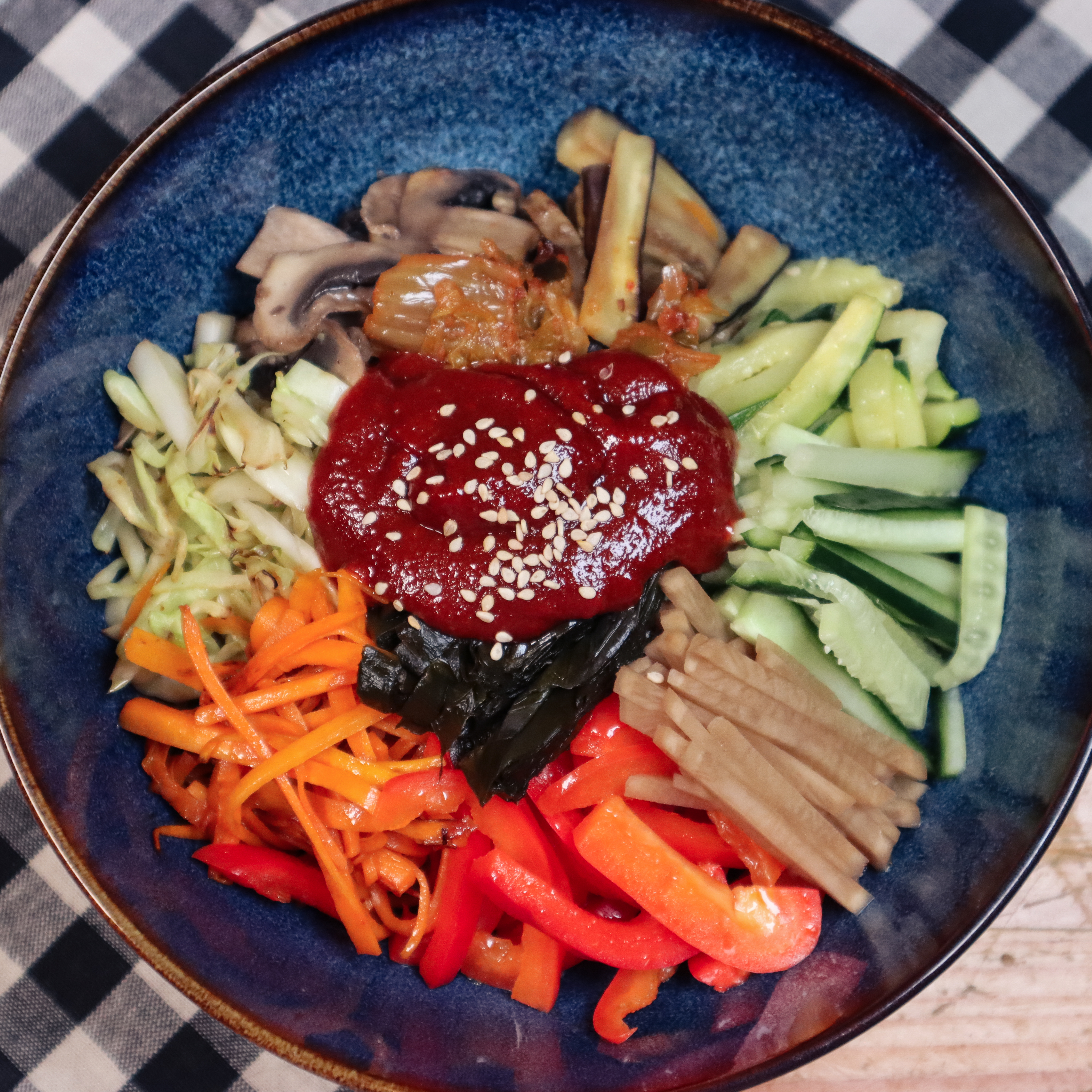 알록달록한 채소와 고소한 참기름 향, 그리고 매콤 달콤한 고추장 소스가 어우러져